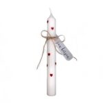 Fein gearbeitete Stabkerze im Format 22×200 mm, handdekoriert und sorgfältig ausgarniert.