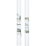 Taufkerze 30x400mm weiss. Details mit Blattwachs verziert.